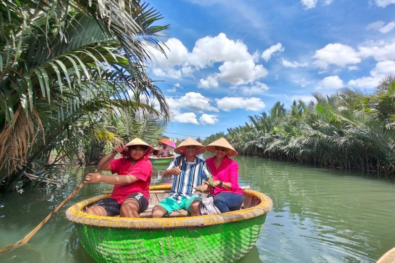 As evening falls, a boat ride along the Hoai River becomes a highlight of the day. Releasing flower lanterns together symbolizes wishes for happiness and love, making this a truly memorable moment.