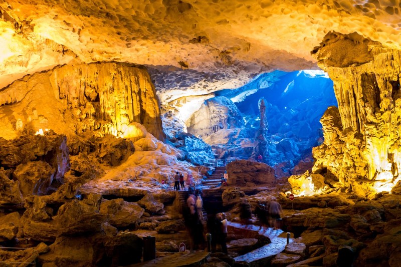 At 10:30, visit Sung Sot Cave, the largest cave in the bay, known for its impressive stalactites and unique formations. Continue to Titov Island at 11:30, where you may swim in the clear turquoise water or climb to the top for panoramic views of the bay.
